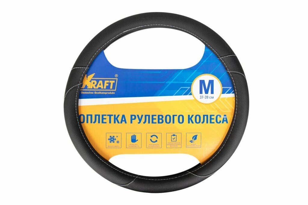 Оплётка руля Kraft KT 800313 Искусственная кожа черная M информация: