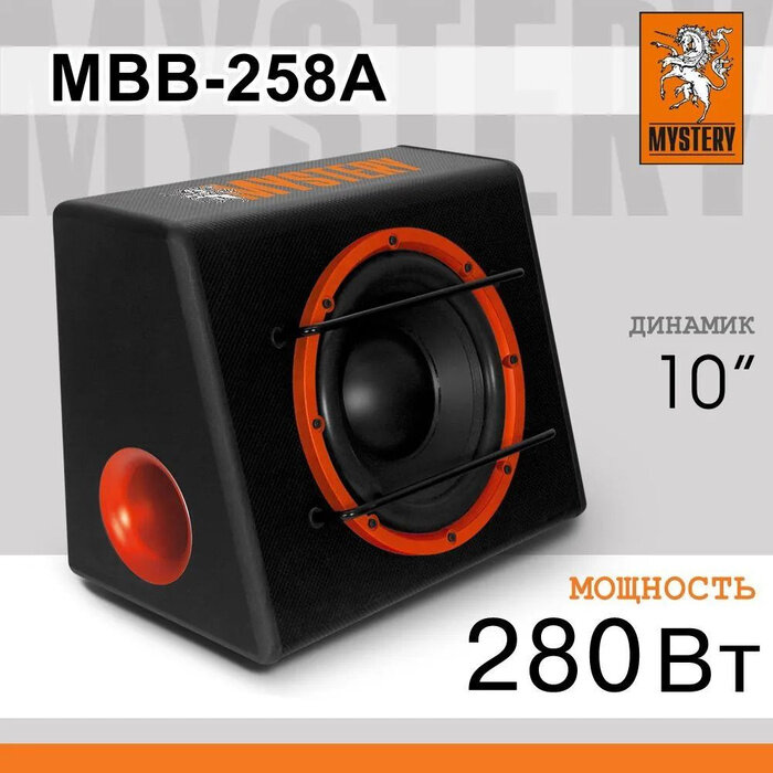 Сабвуфер авто Mystery MBB-258A 675-268, активный, закрытый, 140-280 Ватт информация: