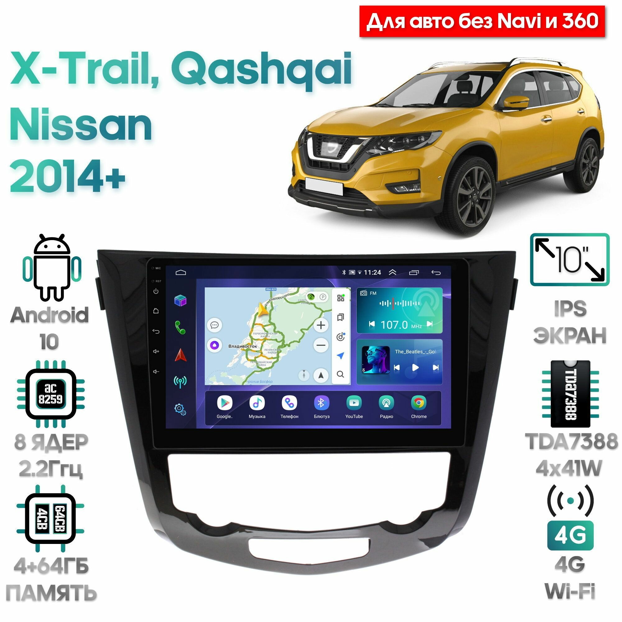 10 цен на Штатная магнитола Wide Media для Nissan Qashqai, X-Trail 2014+ (без Navi и 360) / Android 10, 10 дюймов, 4/64GB, 8 ядер, TDA7388, DSP