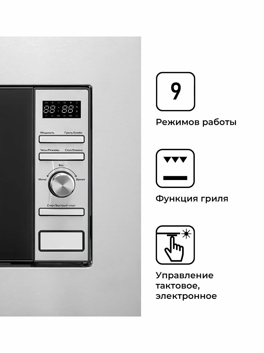 Микроволновая печь LEX Bimo 20.05 INOX, встраиваемая, 20л, 700Вт, нержавеющая сталь [chga100005]