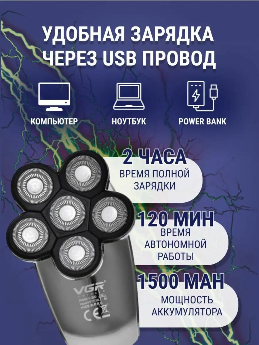 Профессиональный шейвер электробритва мужская VGR V-331 бритва для мужчин электрическая, для сухого и влажного бритья