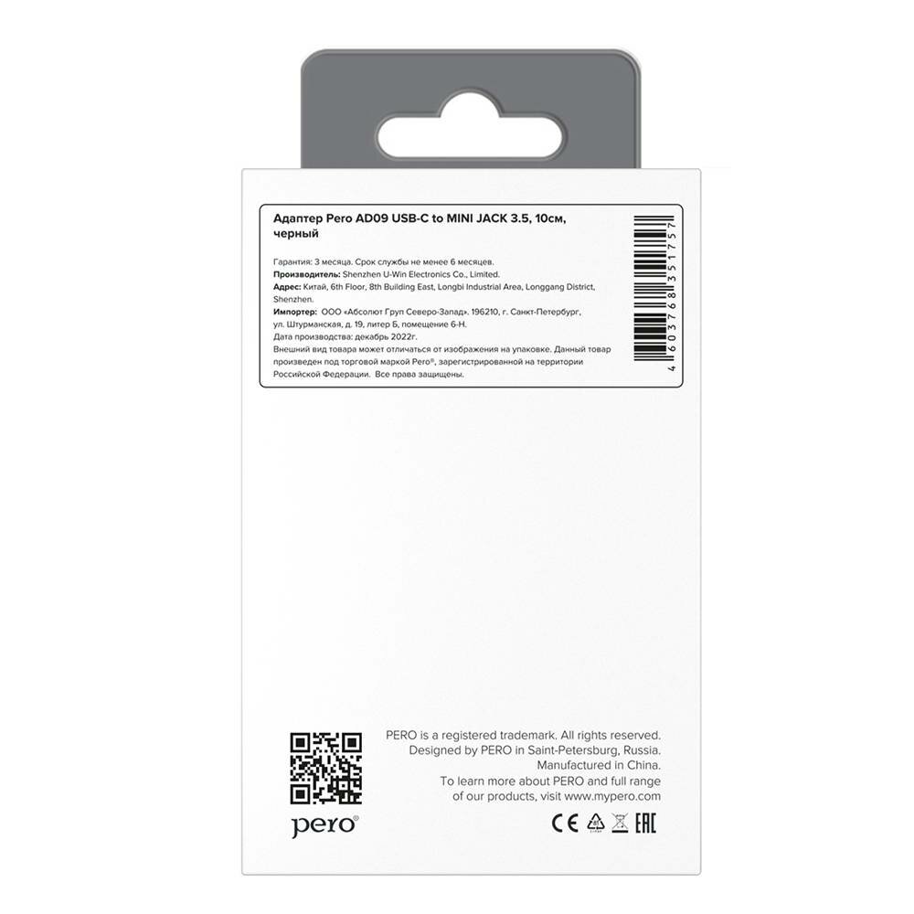 Переходник PERO AD09 USB-C / jack 3.5mm, черный информация: