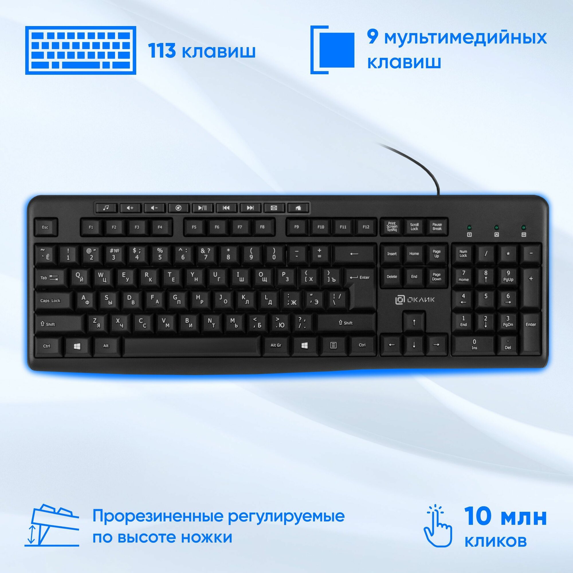 Oklick Keyboard & Optical Mouse Black Кл-ра М/Мед USB+Мышь 4кн Roll Usb <1875246> .
