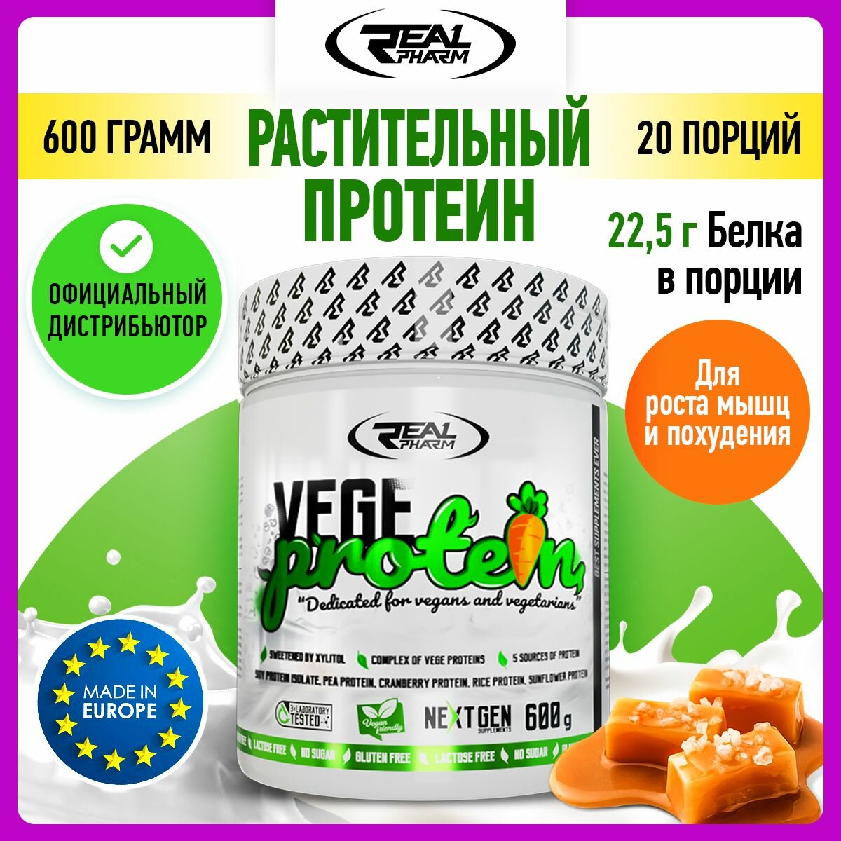 10 цен на Растительный протеин, Real Pharm Vege protein, порошок 600г со вкусом Солёная карамель