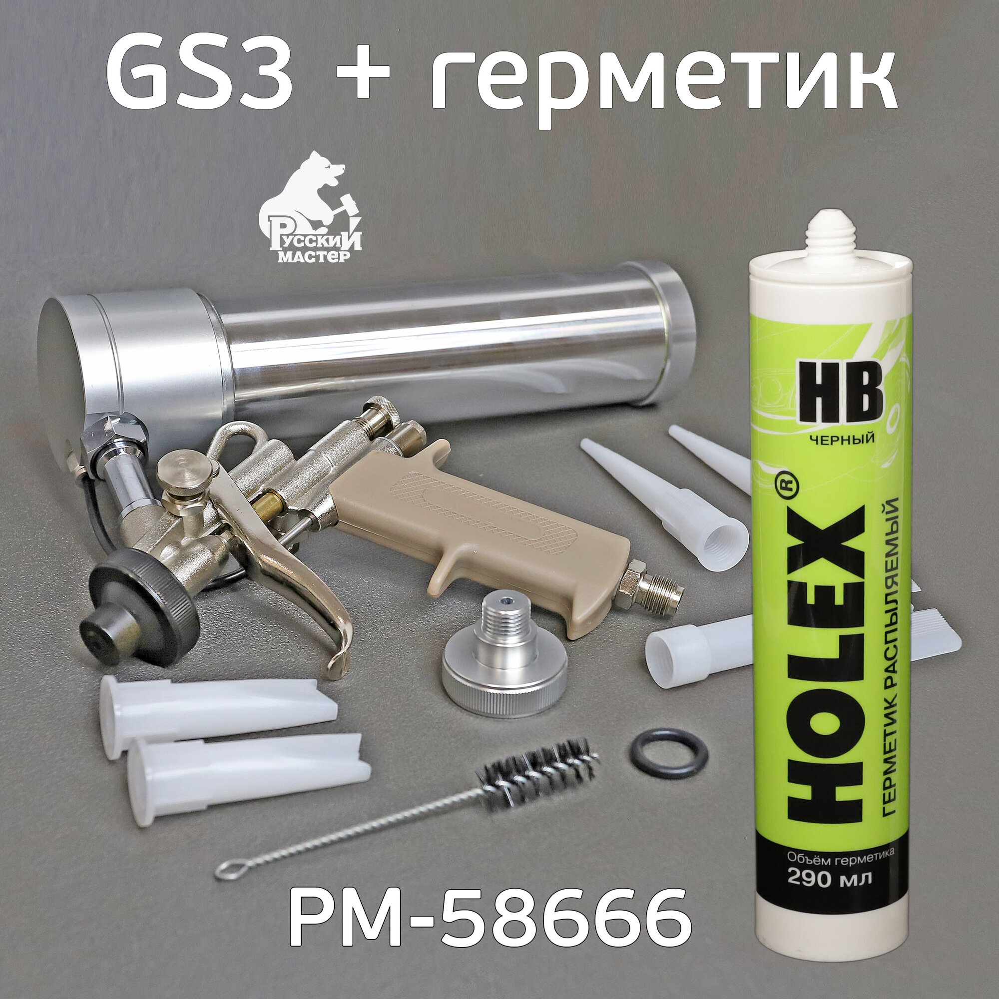 Пистолет GS3 для распыляемых герметиков РМ-58666 + герметик черный распыляемый информация: