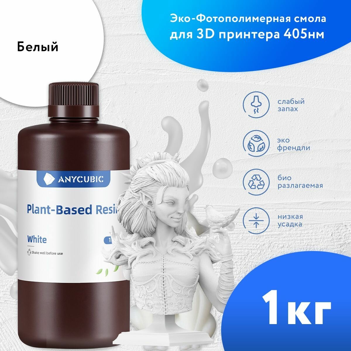10 цен на Экологичная Фотополимерная смола Anycubic ECO Plant-Based UV Resin 365-405 nm для 3D печати на LCD/DLP принтерах 1.0 л Белый