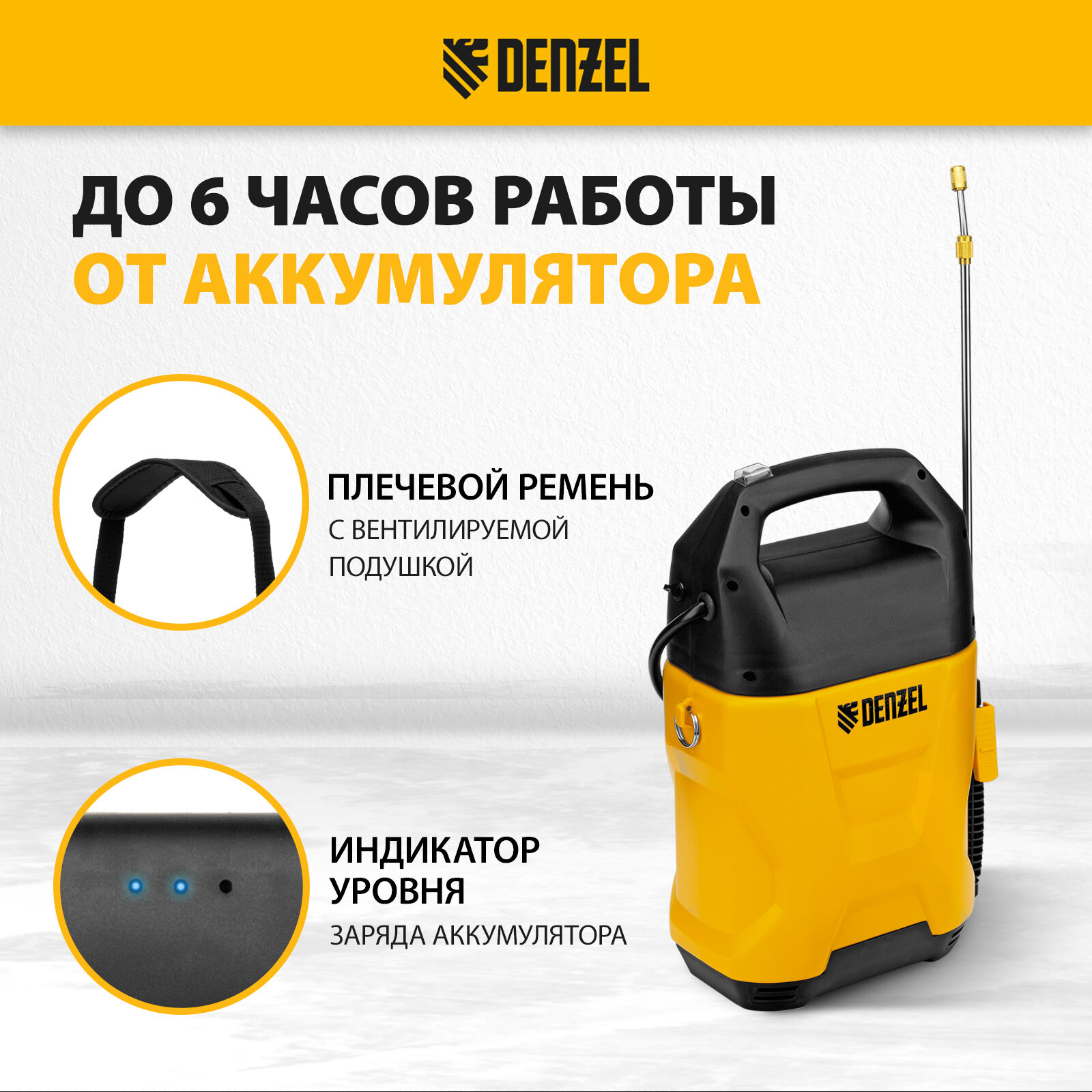 Опрыскиватель ранцевый аккумуляторный DENZEL D-16LA, 5 л, 12 В, 2 Ач 64790