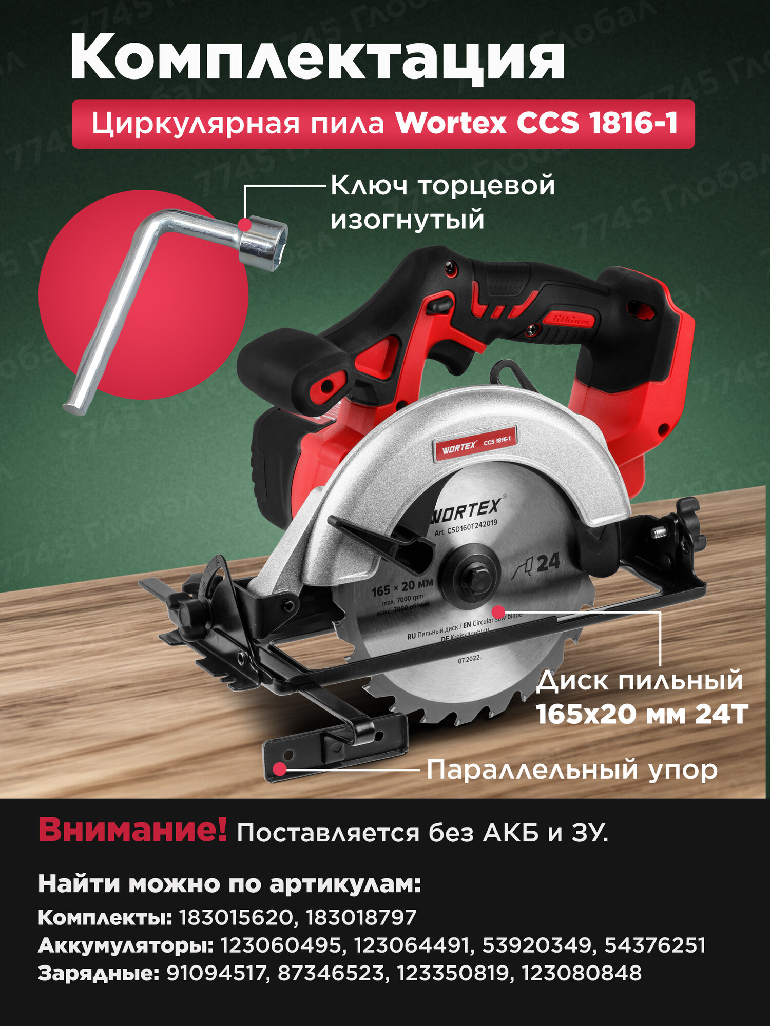 Пила циркулярная дисковая аккумуляторная WORTEX CCS 1816-1 ALL1 без АКБ и ЗУ (0329202) информация: