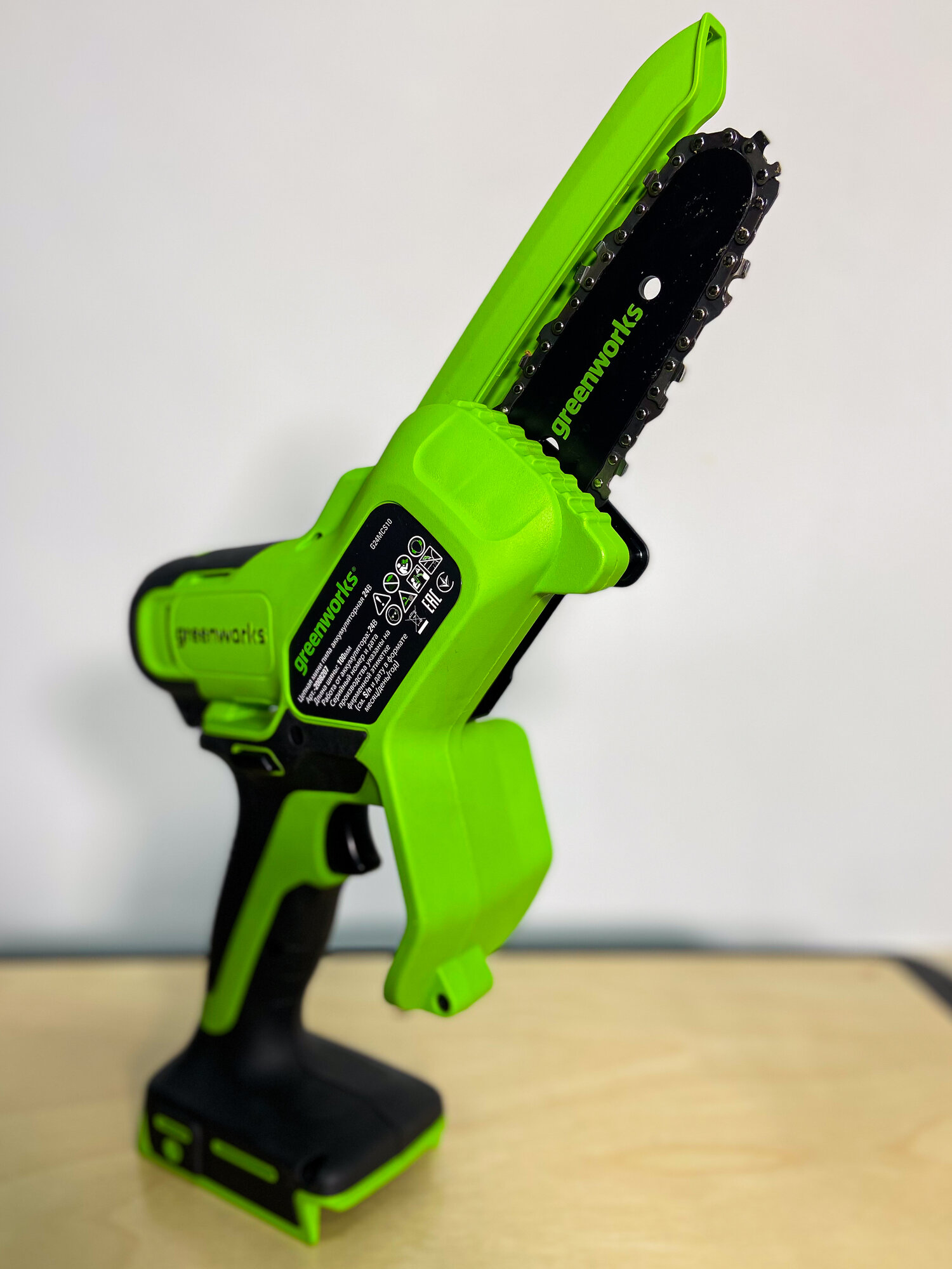 Отзывы на Цепная мини пила аккумуляторная Greenworks 2008207, 24V, 10см, без АКБ и ЗУ