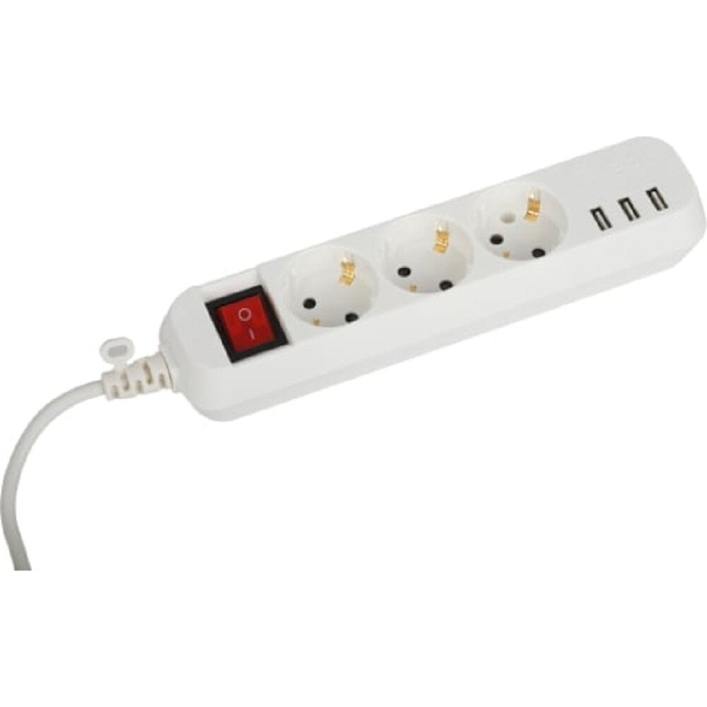 Удлинитель 3гн с З/К 3м с выкл белый 1xUSBA+1xUSBC 10А ПВС 3х0,75 UB-3es-3m-USB ЭРА