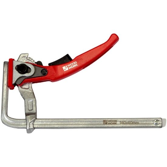 10 цен на Струбцина кованая Woodwork RFC-1660, F-тип 160х60мм c рычажной рукояткой для установки в Т-паз. Усилие до 160 кг