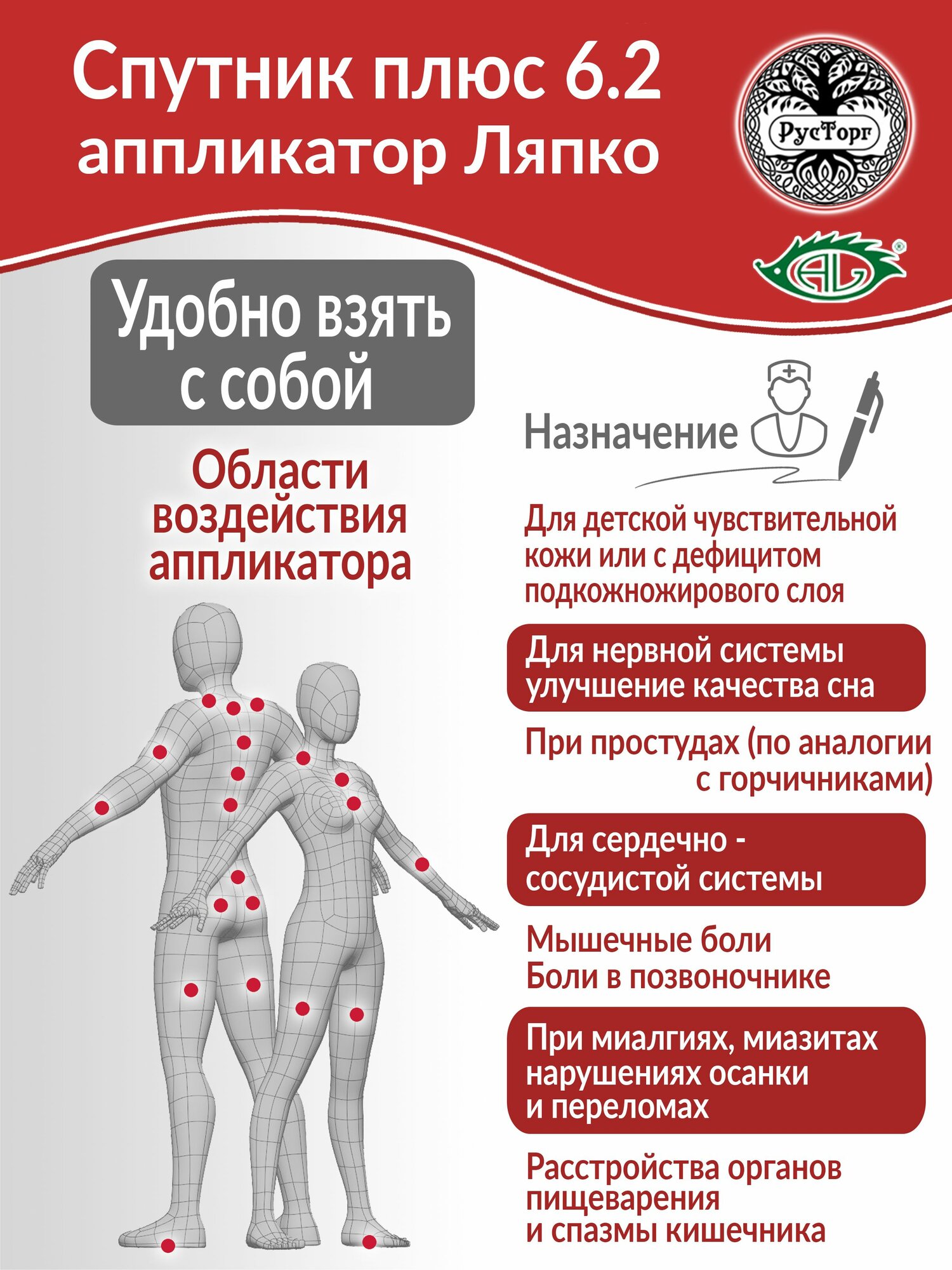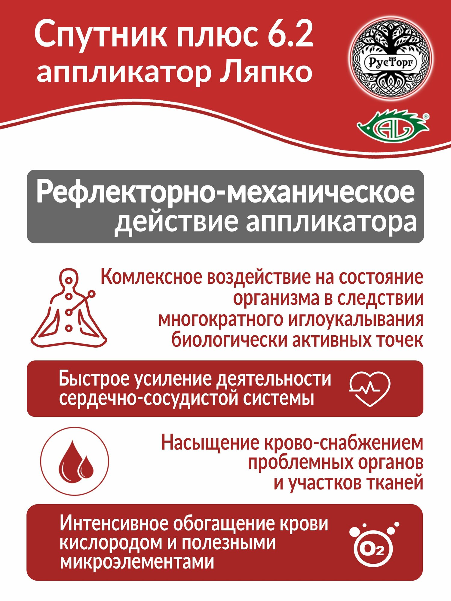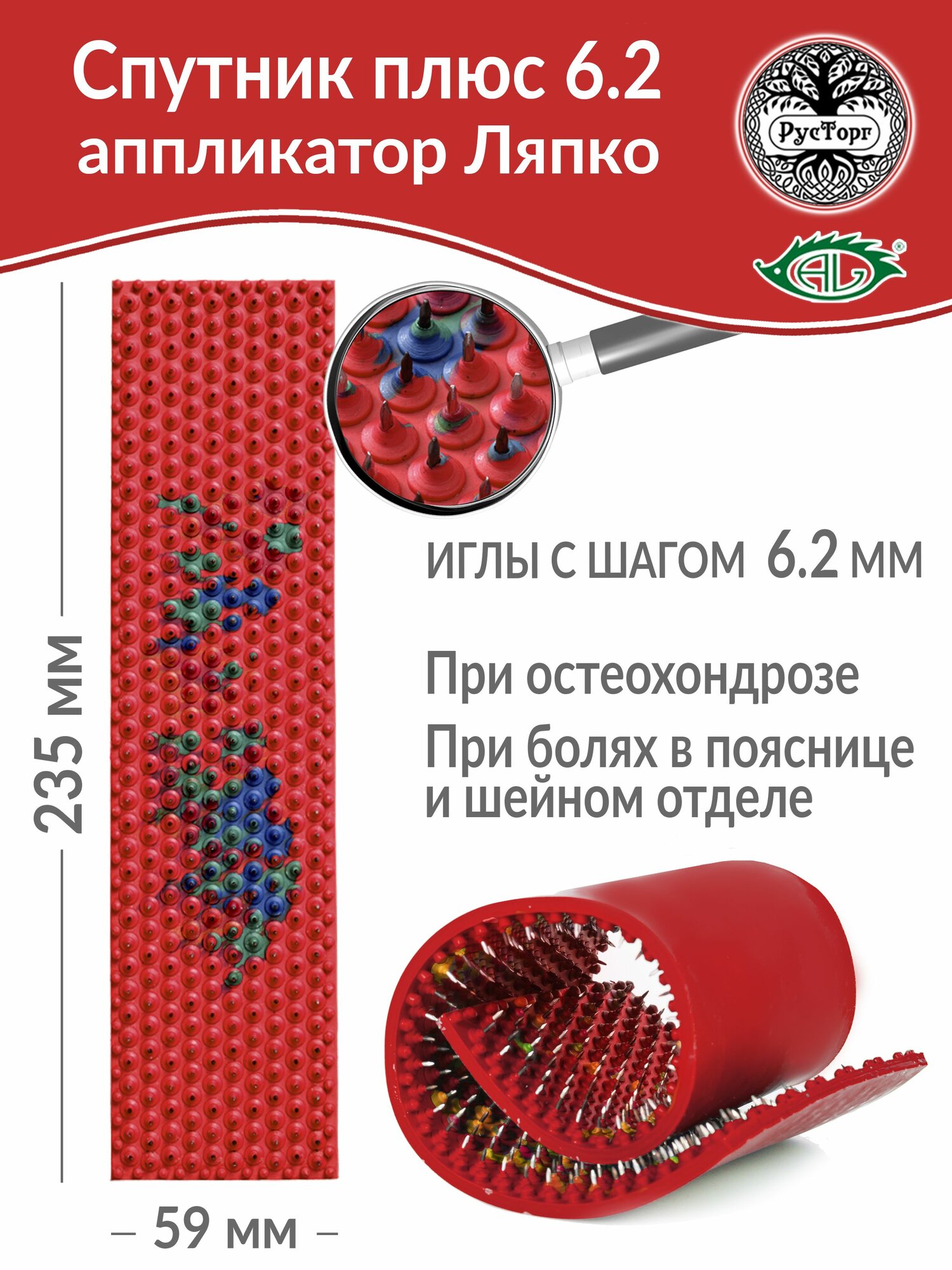 Аппликатор Ляпко Спутник Плюс 6.2 (размер 59 х 235 мм), красный. информация: