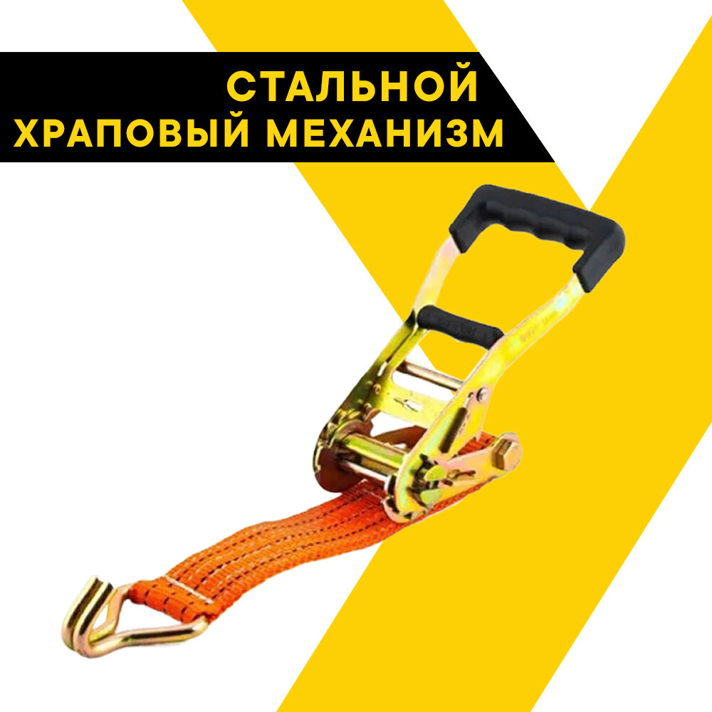 Cтяжные ремни с храповым механизмом для стяжки и крепления груза, такелажный ремень для грузчиков, длина 10м , ширина 75мм, 10/20т