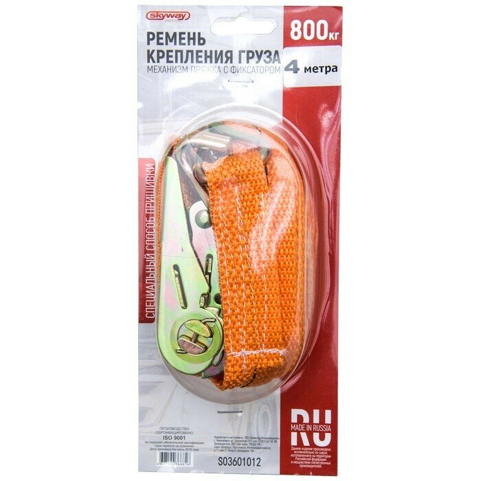 Стяжка крепления груза (ремень) 4м, 0,8 т., с храповиком "SKYWAY" Skyway S03601012