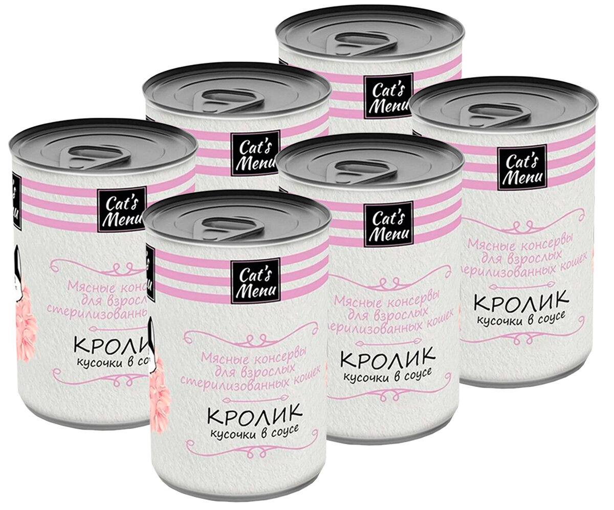 CAT’S MENU для взрослых кастрированных котов и стерилизованных кошек с кроликом в соусе банка NEW 340 гр х 6 шт информация: