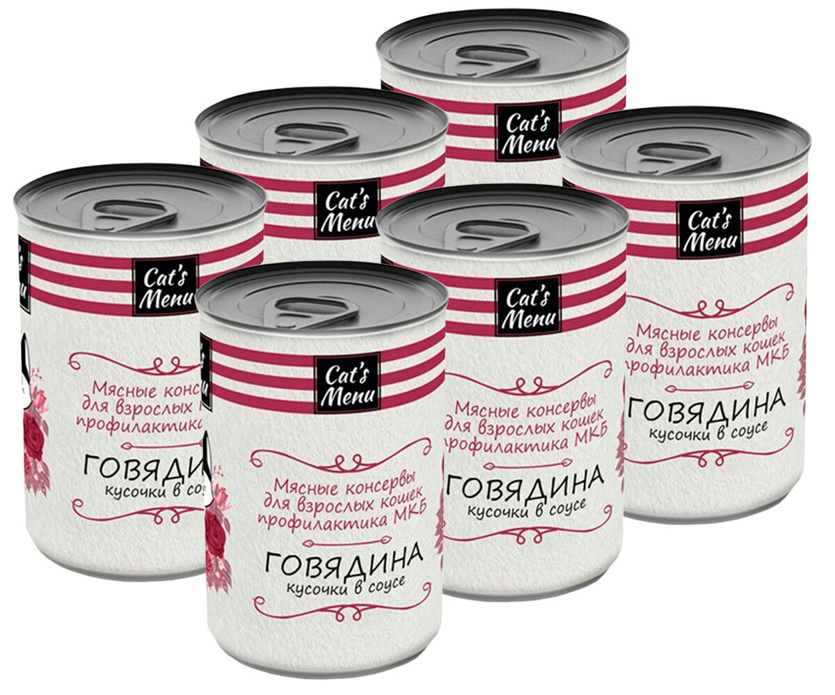 10 цен на CAT’S MENU для взрослых кошек для профилактики мочекаменной болезни с говядиной в соусе банка NEW 340 гр х 6 шт
