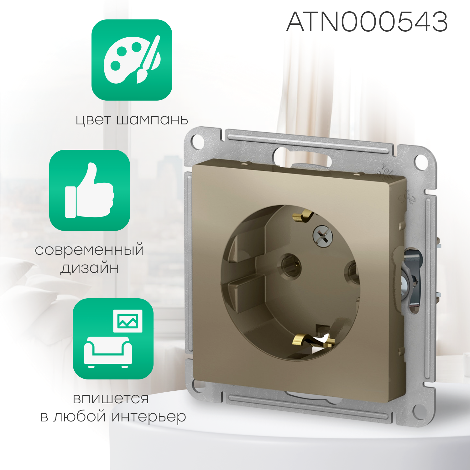Розетка с заземлением шампань Systeme Schneider Electric ATLASDESIGN 16А механизм ATN000543 комплект 10 шт информация: