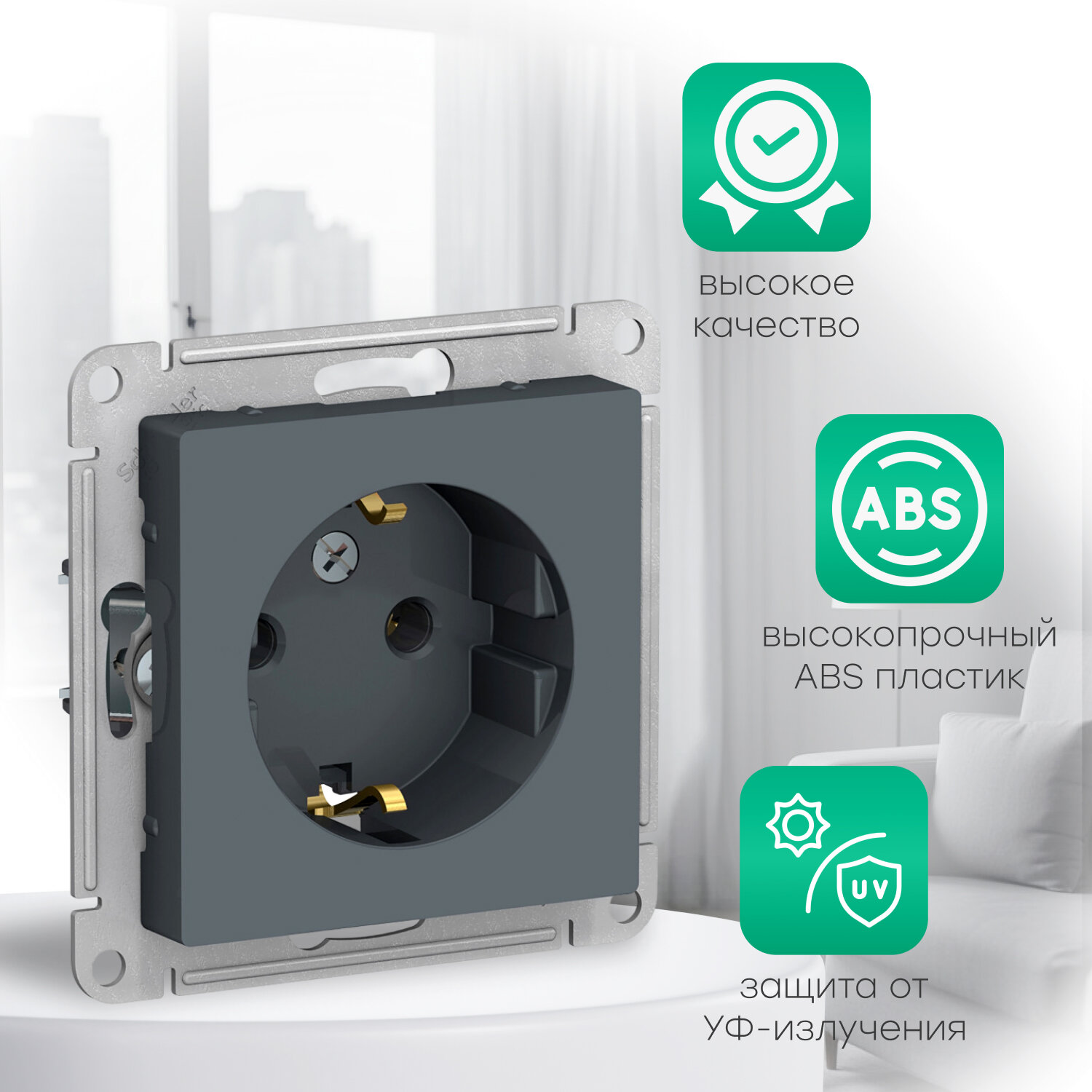 Розетка ATLASDESIGN, скрытый монтаж, с заземлением, карбон | код. ATN001043 | Schneider Electric (7шт. в упак.)