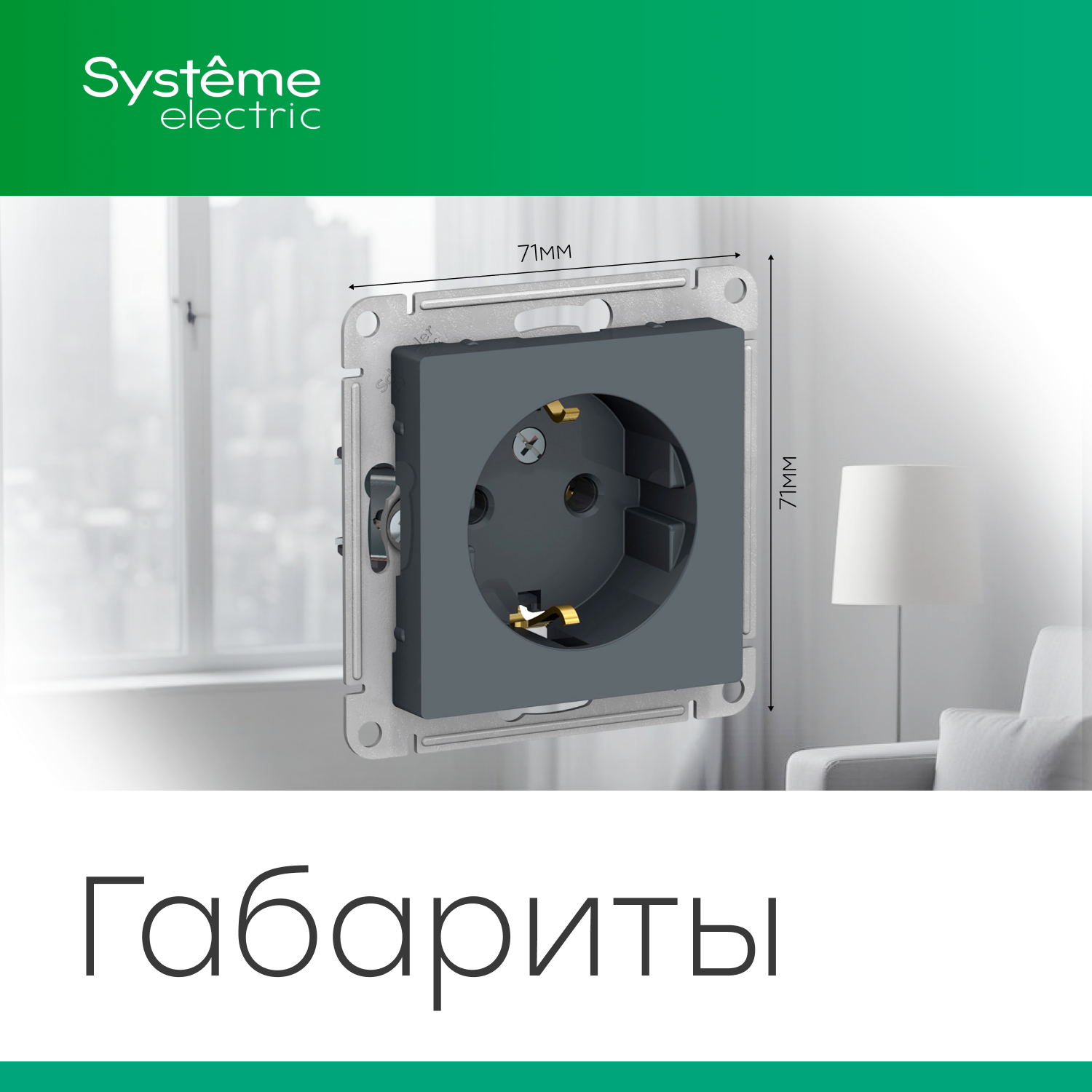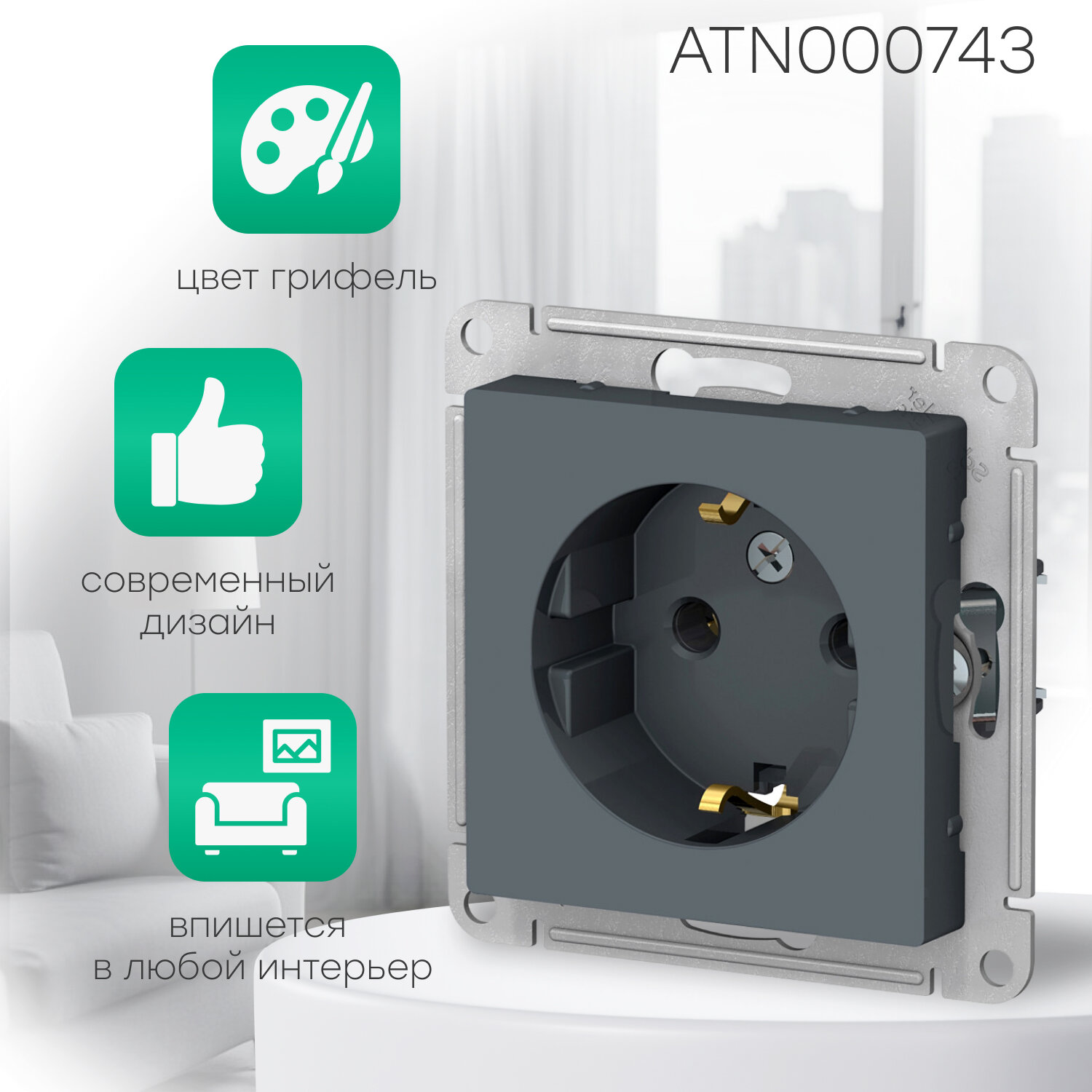 Розетка с заземлением Systeme Schneider Electric ATLASDESIGN 16А механизм грифель ATN000743 комплект 10 шт информация: