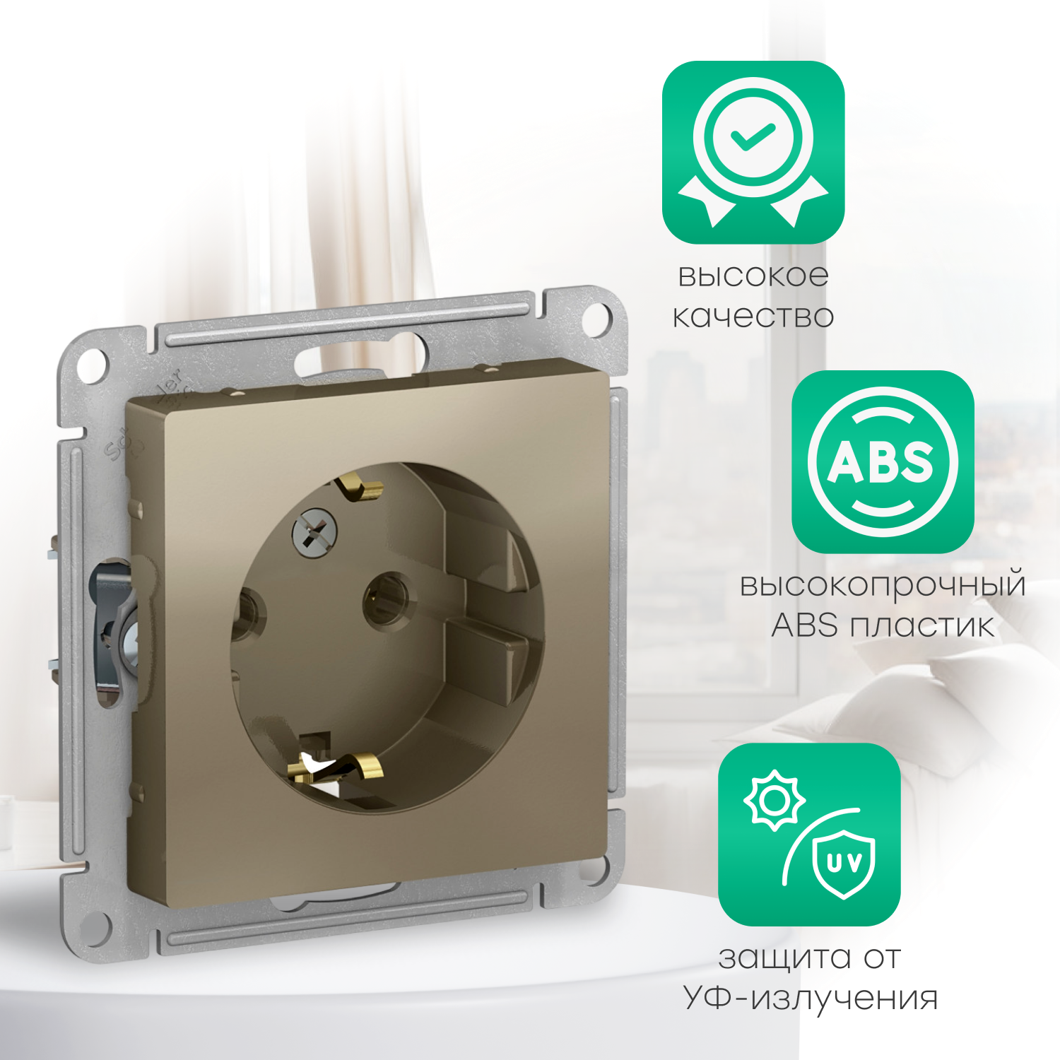 Розетка ATLASDESIGN, скрытый монтаж, с заземлением, со шторками, шампань | код. ATN000545 | Schneider Electric ( 1шт. )