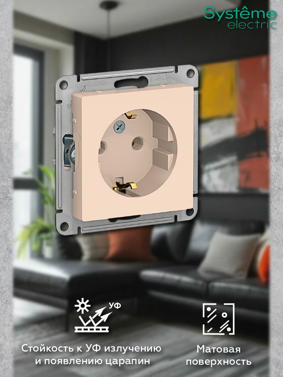 Розетка с заземлением, бежевая Schneider Electric AtlasDesign (комплект 6шт) информация: