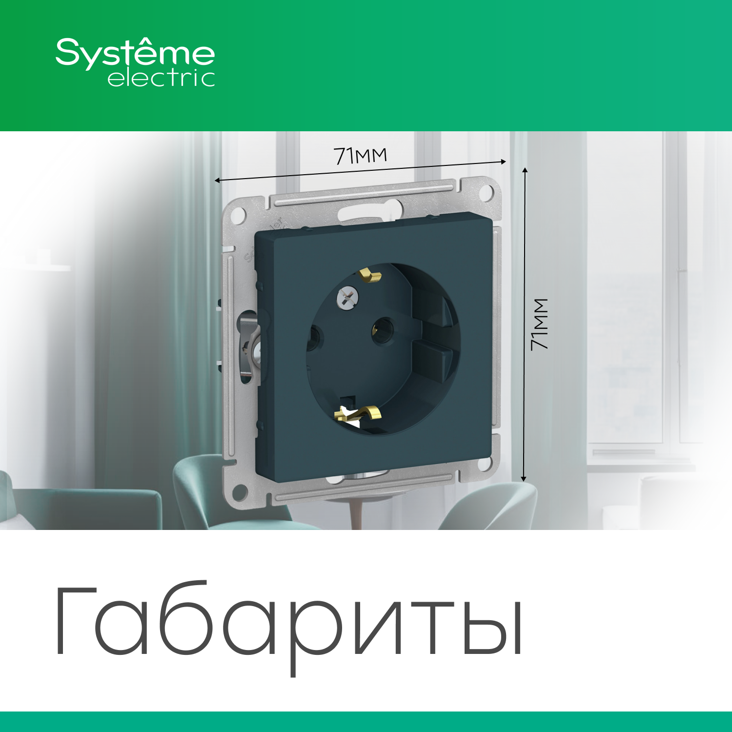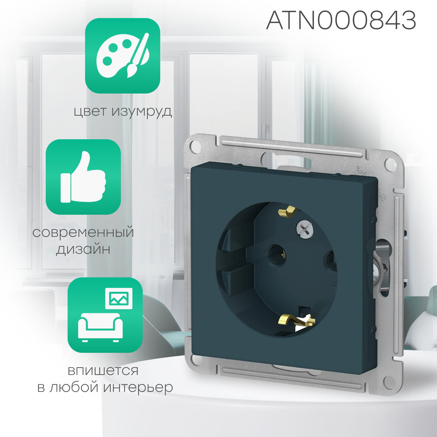 Systeme (Schneider) Electric ATLASDESIGN розетка с заземлением, 16А, механизм, изумруд ATN000843 комплект 5 шт информация: