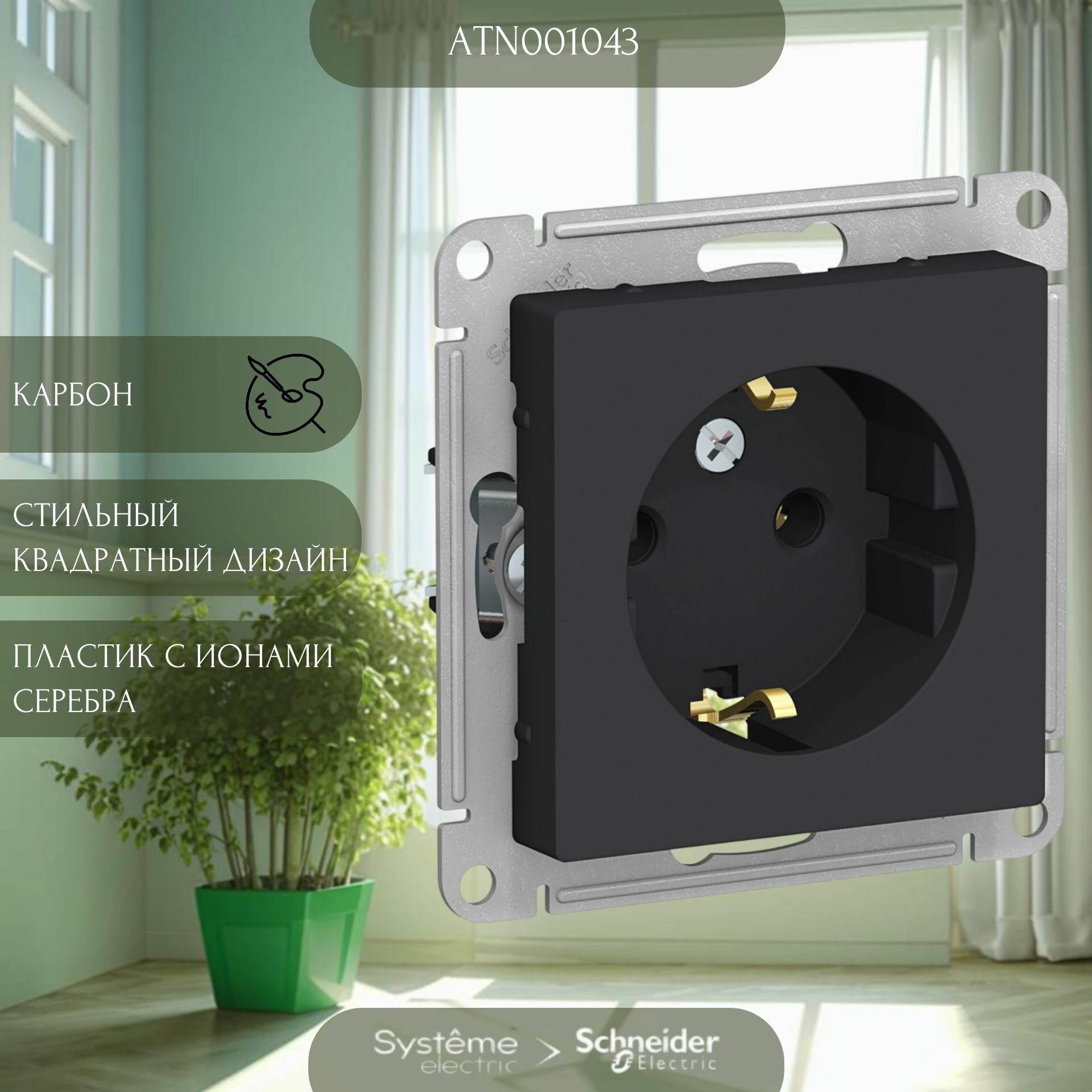 Розетка ATLASDESIGN, скрытый монтаж, с заземлением, карбон | код. ATN001043 | Schneider Electric (6шт. в упак.)