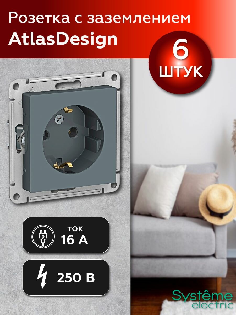 Розетка с заземлением, грифель Schneider Electric AtlasDesign (комплект 6шт) информация: