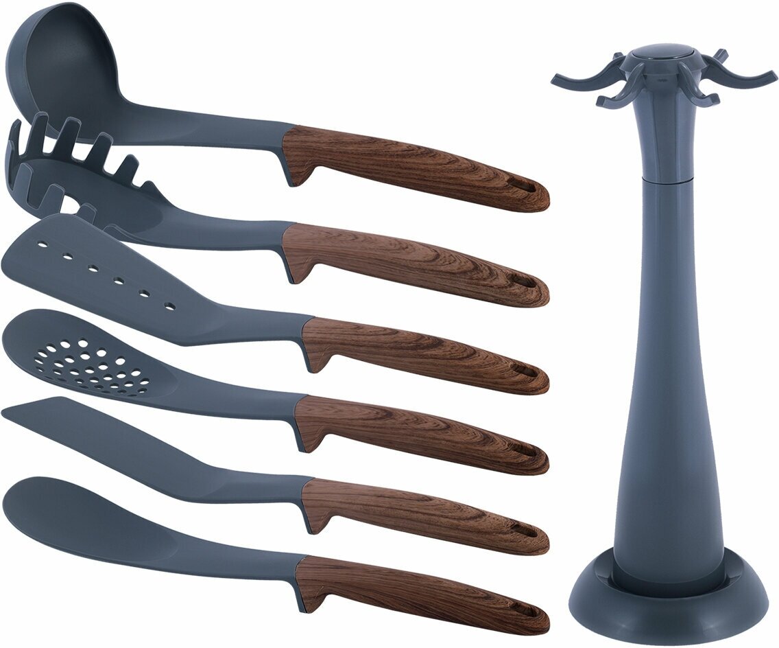 Набор кухонных принадлежностей с подставкой 7 предметов нейлоновые с ручкой под дерево KAMILLE