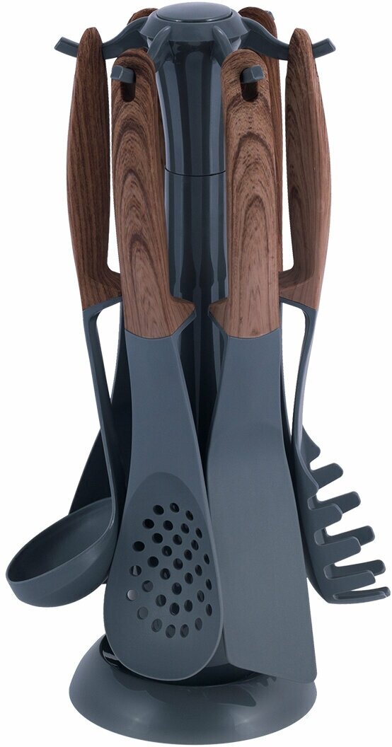 Набор кухонных принадлежностей с подставкой 7 предметов нейлоновые с ручкой под дерево 923307
