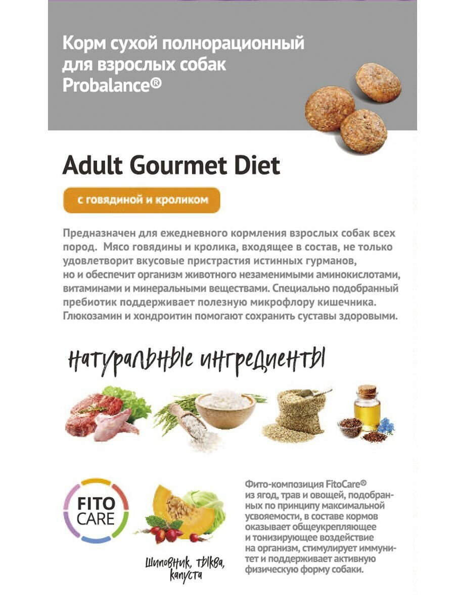 ProBalance Gourmet Diet Adult Beef & Rabbit - Сухой корм для собак гурманов с Говядиной и Кроликом 15 кг