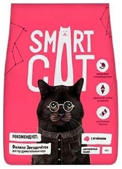 Отзывы на Smart Cat сухой корм Сухой корм для взрослых кошек с ягненком и овощами ADULT Lamb and vegetables 0,400 кг 25425 (2 шт)