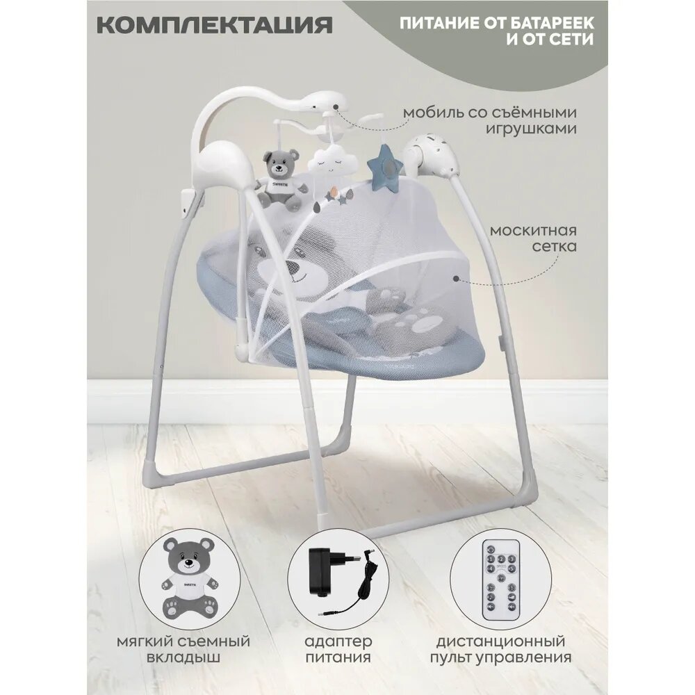 Электронные качели Indigo Teddy, синий, для детей с рождения 0+ информация: