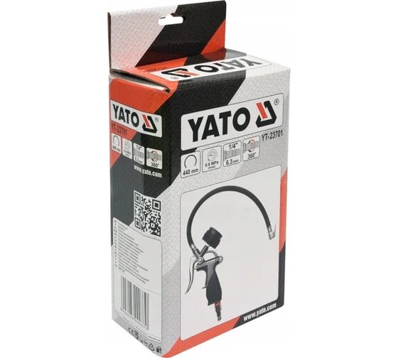 Пистолет Пневматический Для Накачивания Шин С Манометром, 8 Бар, 14 Inch, 440 Мм, Блистер Yato Yt-2370 YATO арт. YT-2370