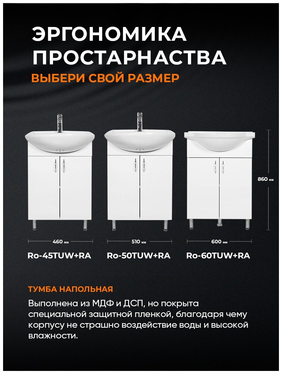 Тумба с раковиной Orange Роса 45 белая Ro-45TUW+RA информация: