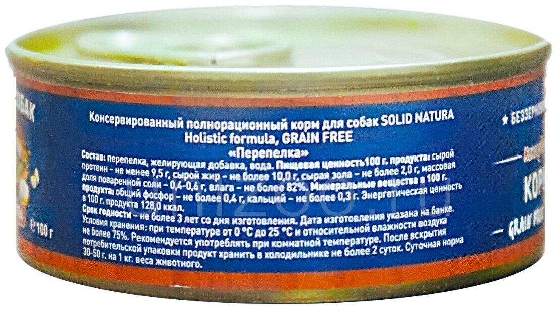 Solid Natura SOLID NATURA HOLISTIC монобелковые для взрослых собак с перепелкой (340 гр х 12 шт)