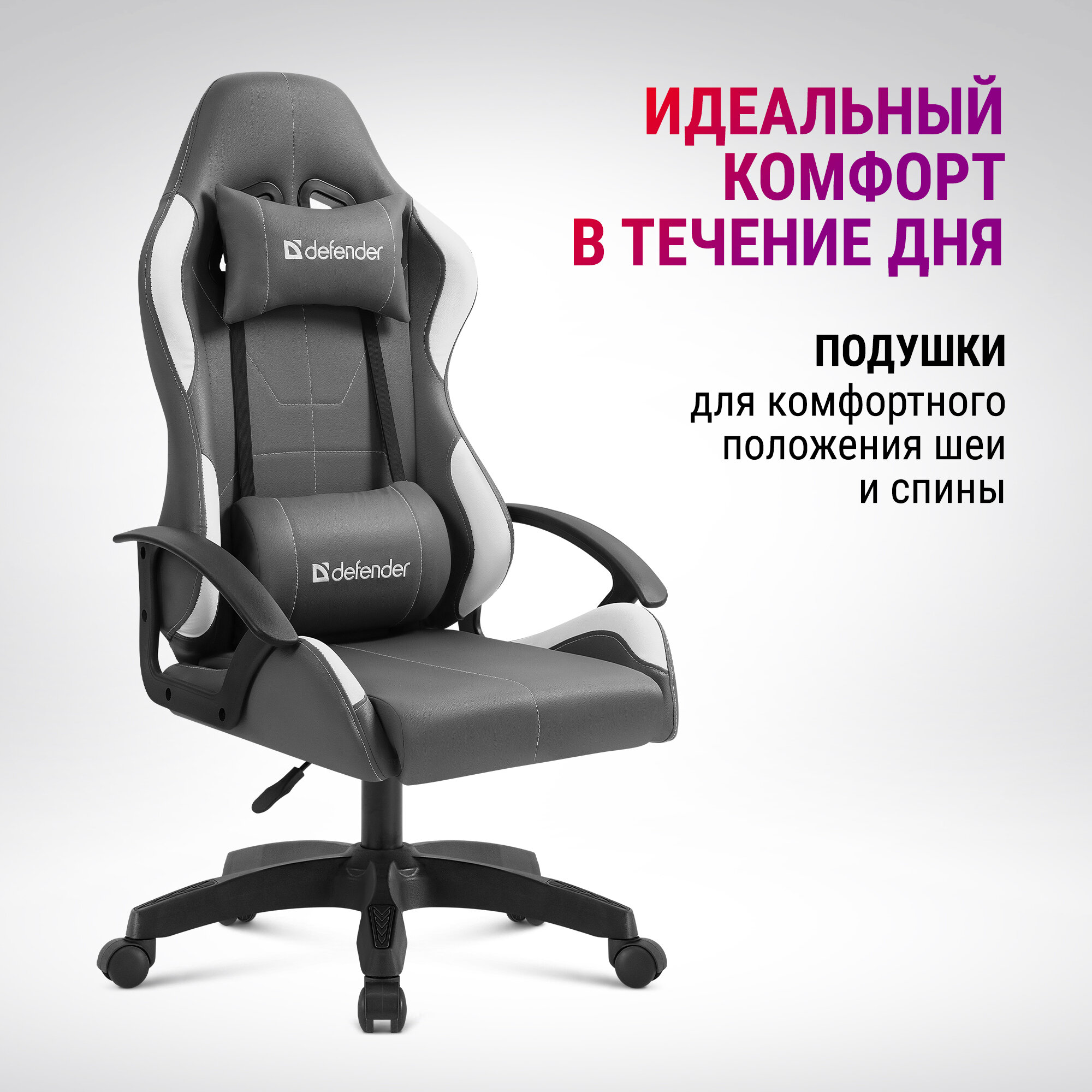 10 цен на Кресло компьютерное, игровое Defender Chromos черный/белый, 2 подушки