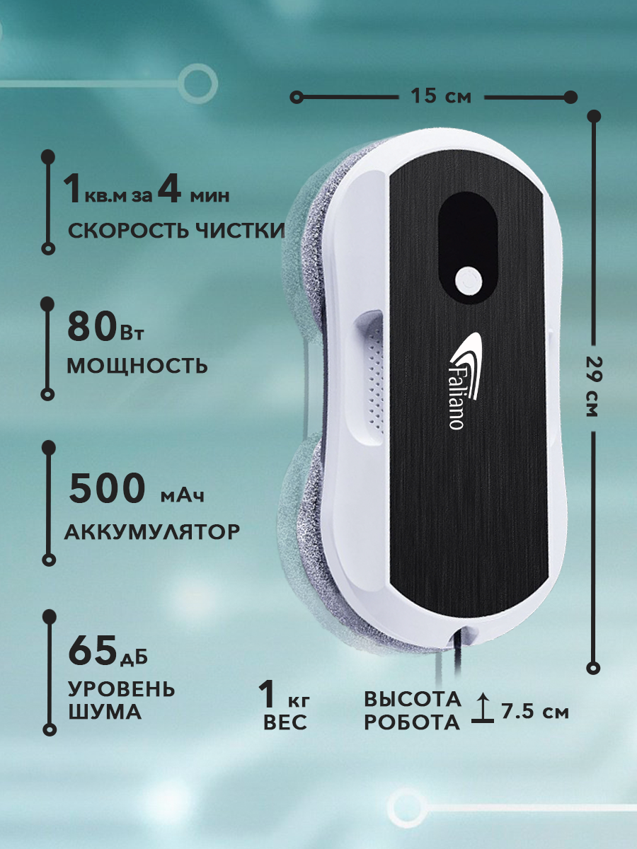 Робот мойщик окон Faliano с двумя распылителями, 20 салфеток в комплекте информация: