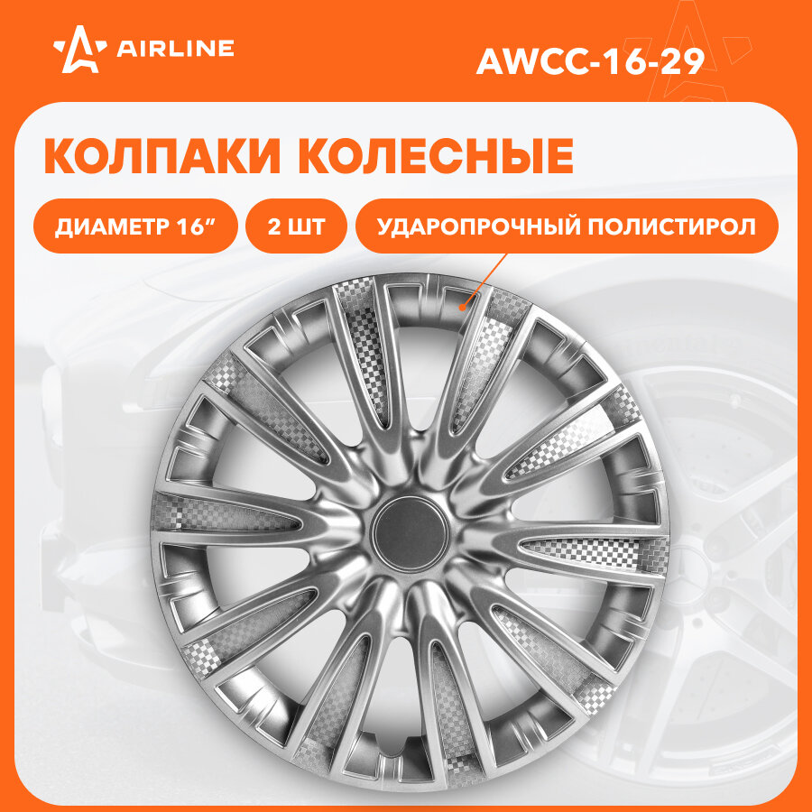 AIRLINE AWCC-16-29 Колпаки колесные 16 Торнадо серебристый карбон компл. 2 шт. (AWCC-16-29)