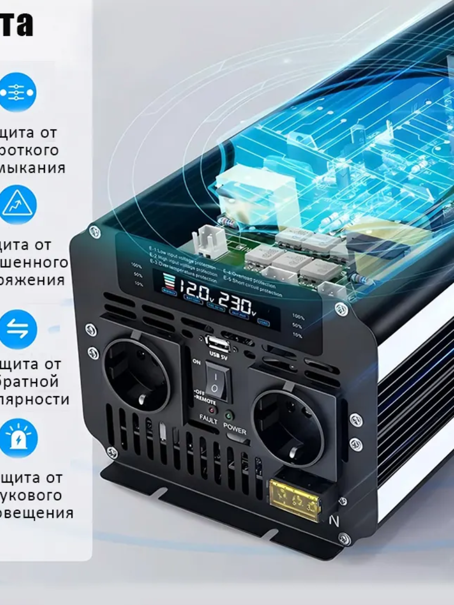 Автомобильный преобразователь напряжения 12В-24В-220В инвертор Lvyuan-12000