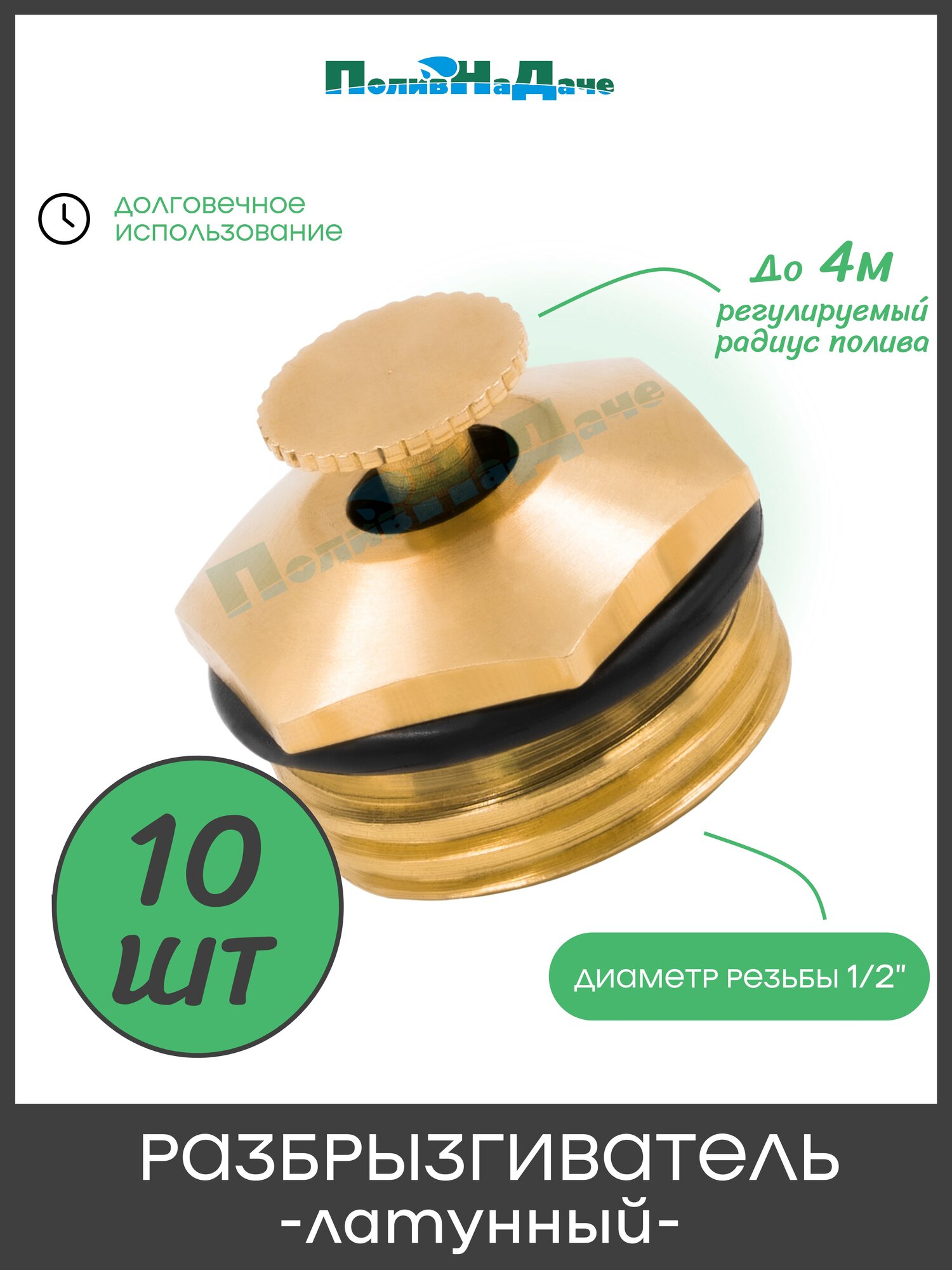 10 цен на Разбрызгиватель латунный, регулируемый 1/2" нар., вылив 120-600 л/ч, радиус 2-4м - 10 шт