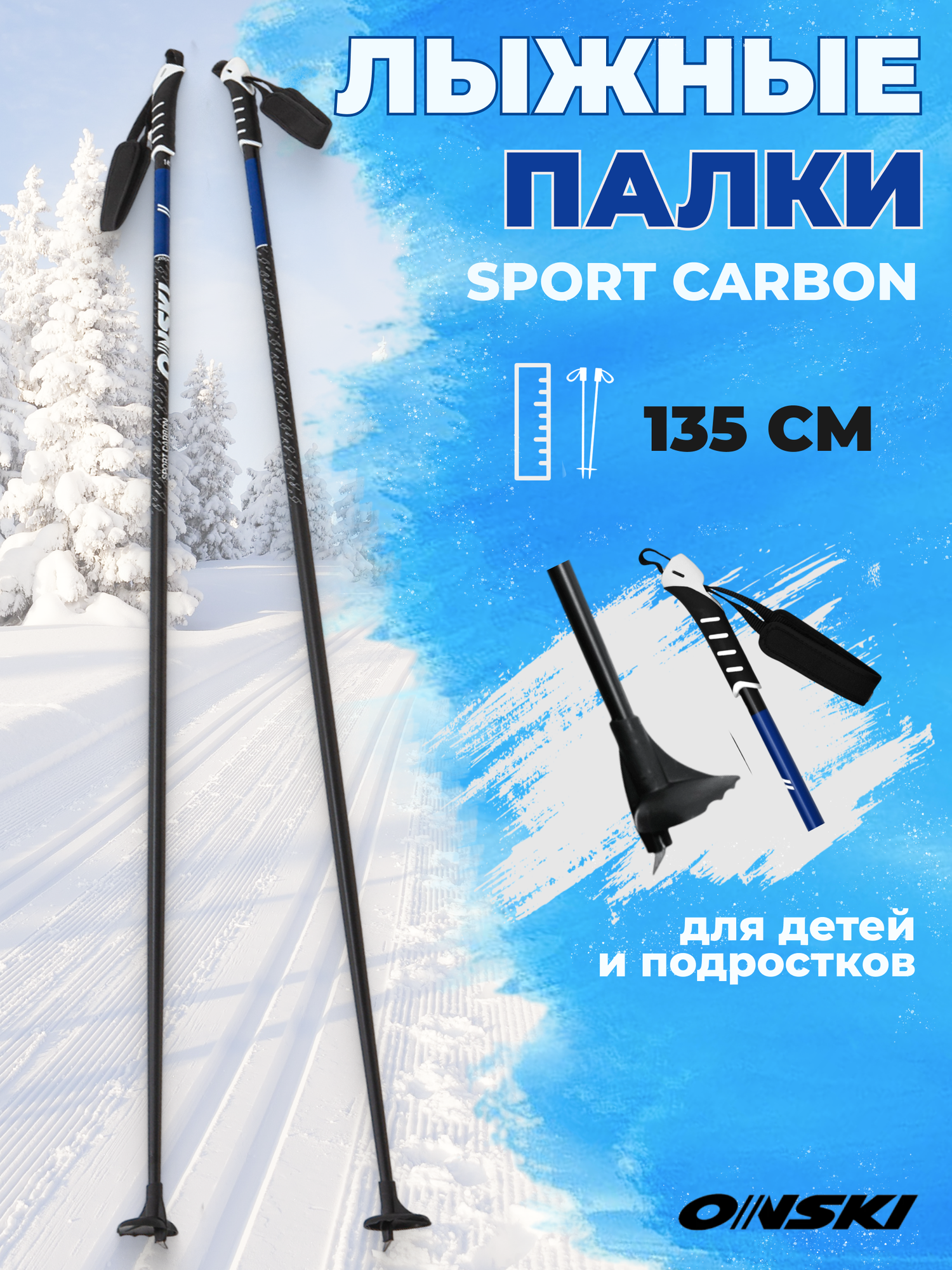 Лыжные палки ONSKI SPORT CARBON 135 см беговые для детей информация: