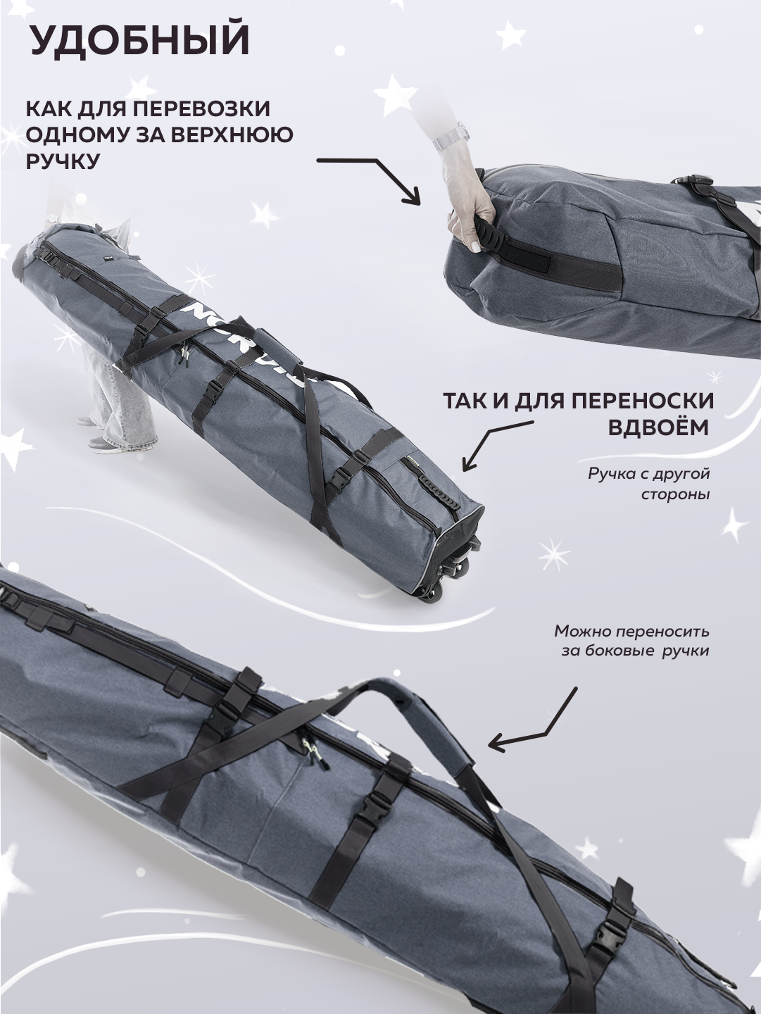 Чехол для горных лыж и сноубордов Nordic на колесах серый 170 см информация: