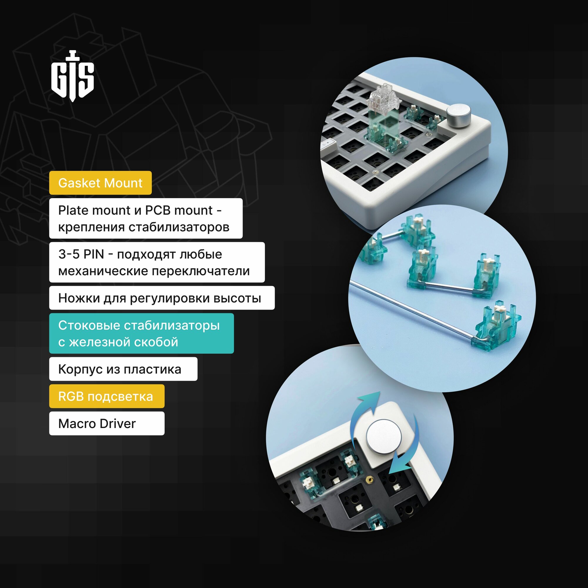 Отзывы на База для сборки механической игровой клавиатуры GMK67 (Black), 65% Hotswap, RGB, Win Mac, Утилита, 3 MOD(Bluetooth, провод, 2.4g Radio), Черный