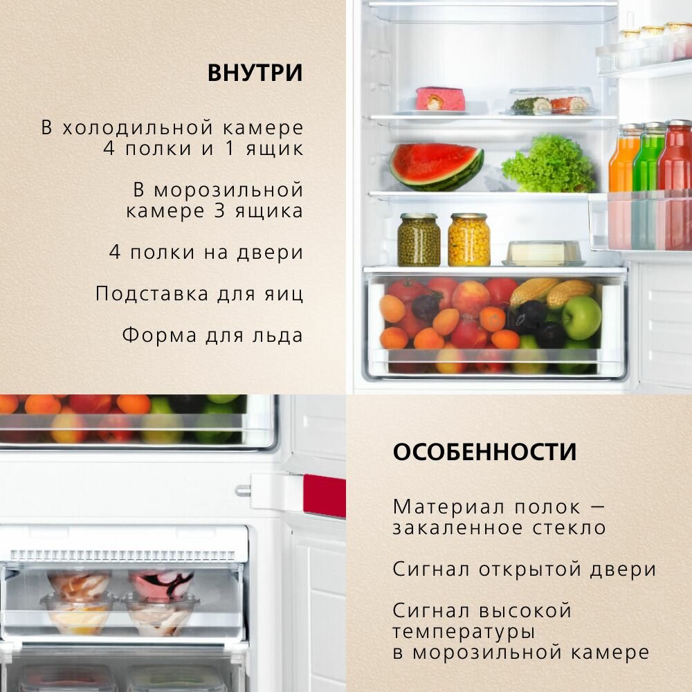 Встраиваемый холодильник/ !! 178x54x54, 190/70 л, нижняя морозильная камера, белый