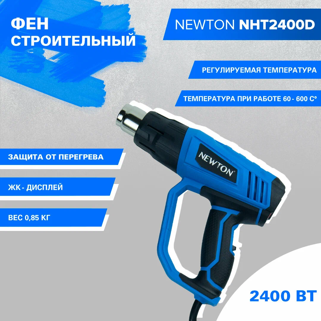 10 цен на Строительный фен Newton, ЖК дисплей, 2 насадки, до 600°C