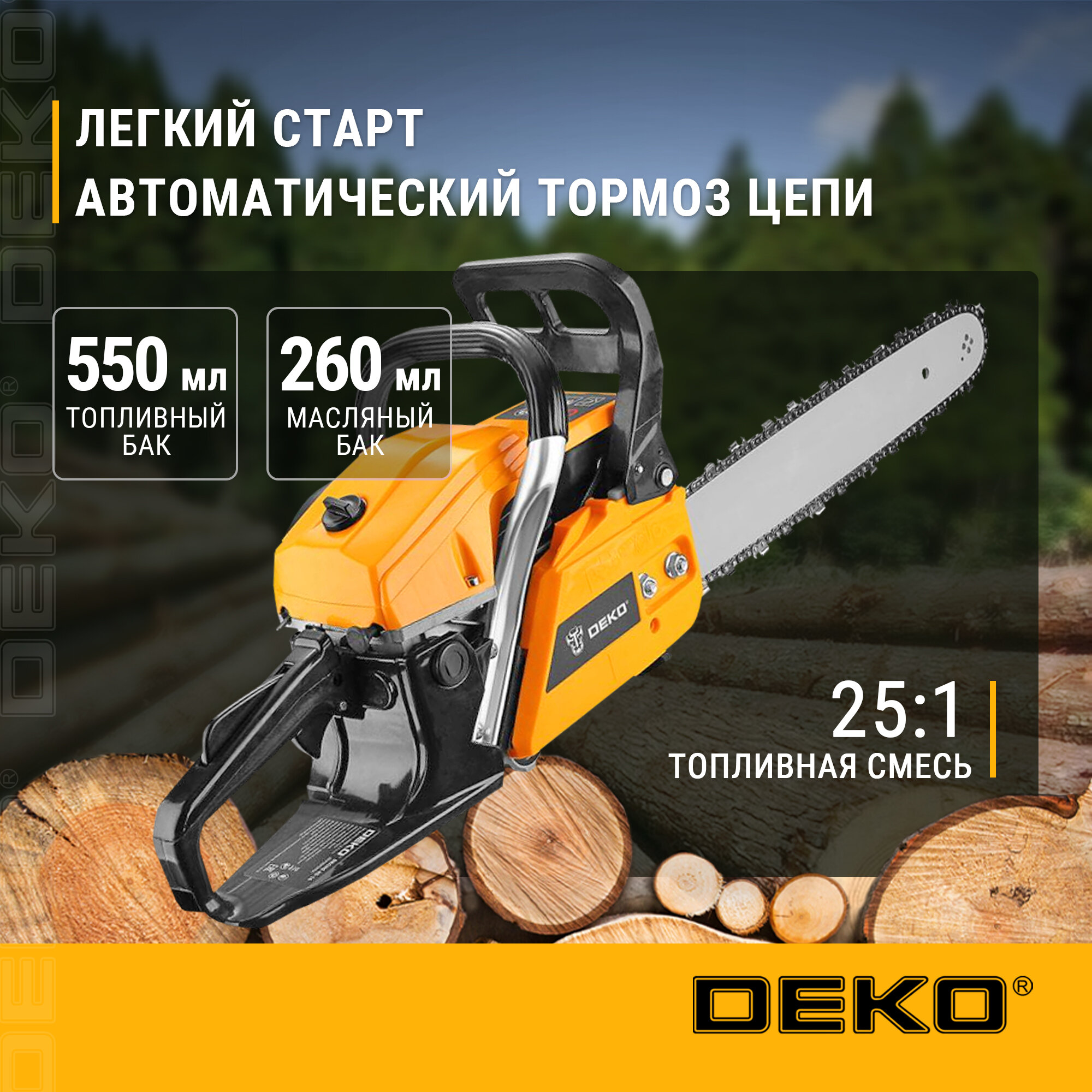 Бензопила DEKO DKCHS 52-18, 3,8 л. с, 52 куб. см, 18", тормоз цепи 9 110 ₽
