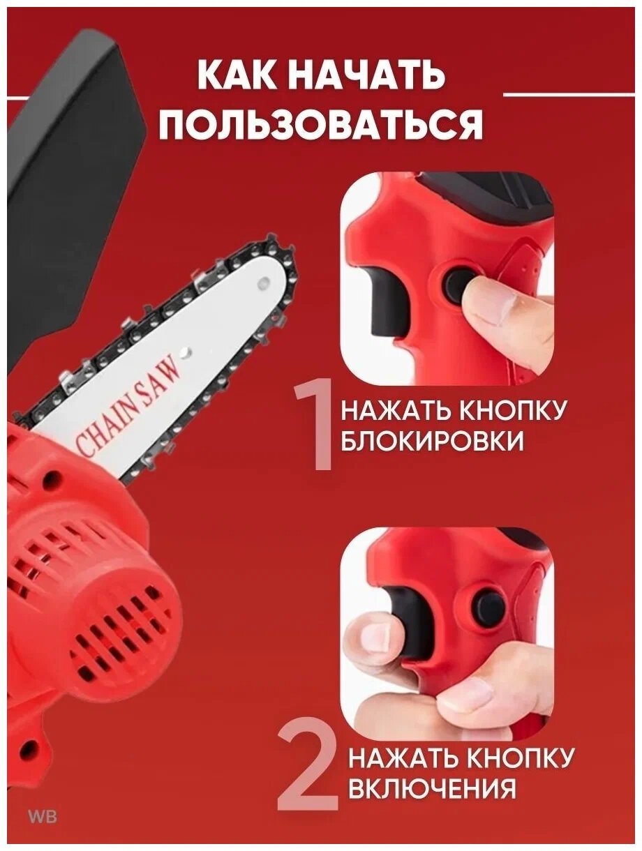Цепная мини пила аккумуляторная ручная садовая, Портативная цепная аккумуляторная бензопила