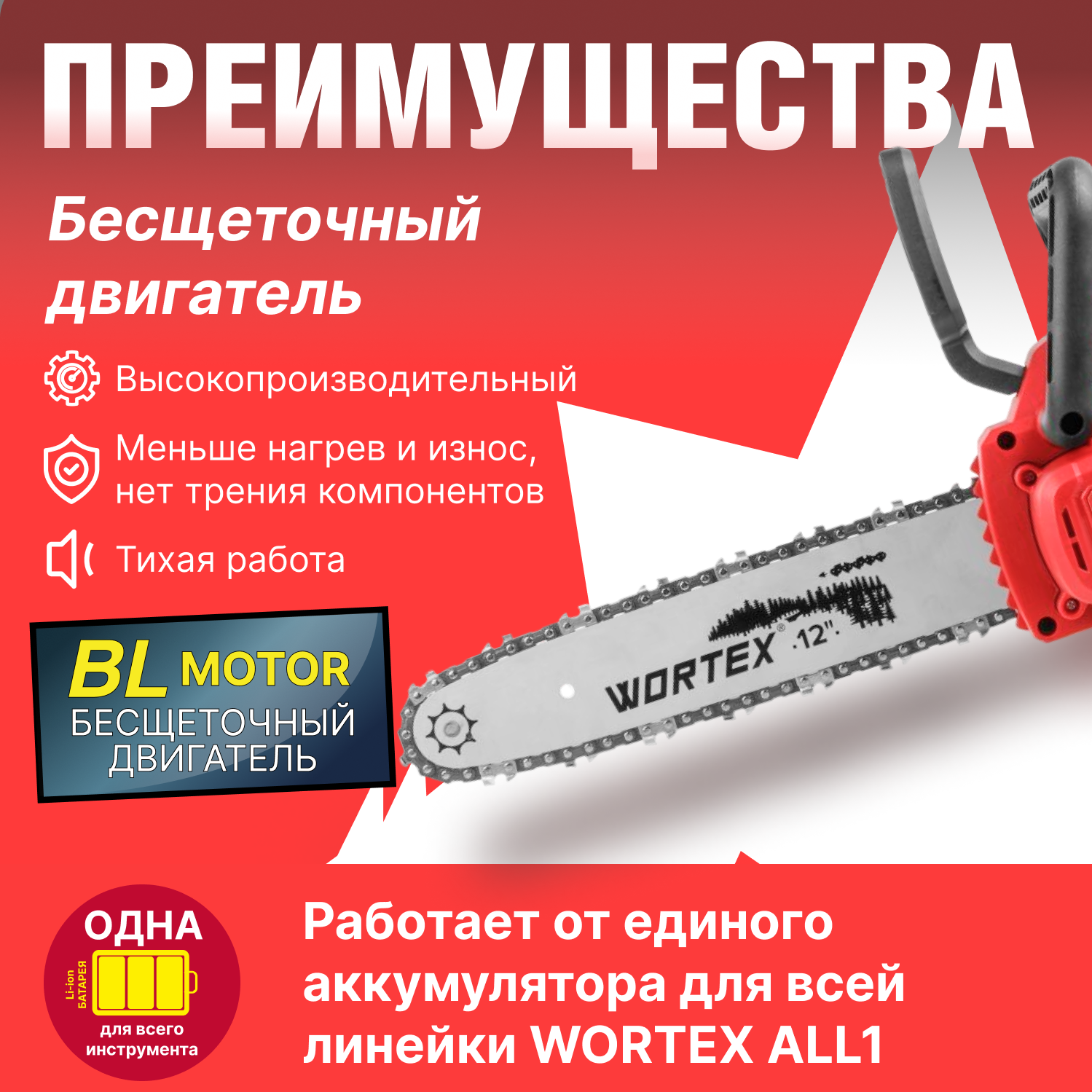Пила цепная аккумуляторная WORTEX CEC 3018 ALL1 без аккумулятора и зарядного устройства (0333223) информация: