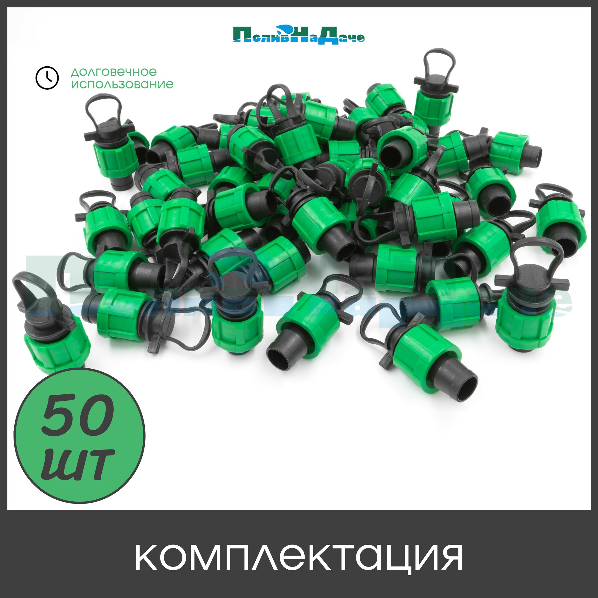 10 цен на Заглушка для капельной ленты 16мм с кольцом с поджимной гайкой - 50 шт